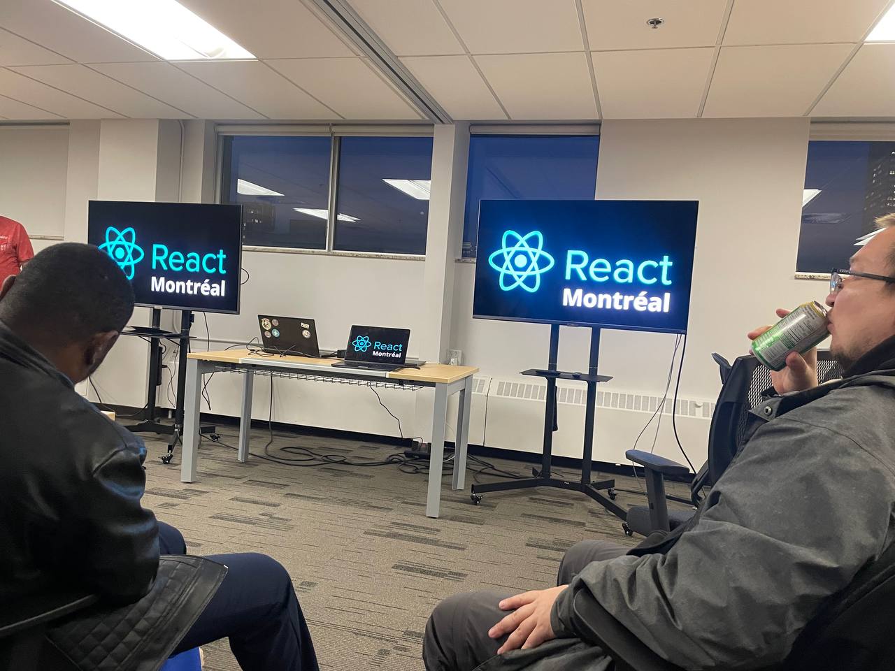 Depuis le Cameroun, je suivais régulièrement les meetups de React Montréal. En tant que développeur React à la base, c’était pour moi un véritable plaisir d’avoir enfin l’occasion d’y assister. React Montréal marque donc mon tout premier événement de rencontre au Canada. Moi qui ai toujours aimé ce genre de rassemblements, j’ai vraiment apprécié l’expérience.