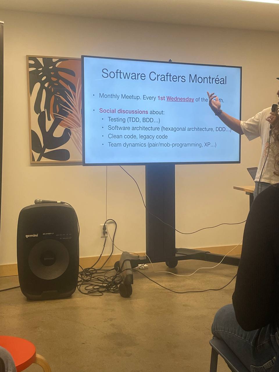 Après mon premier meetup à Montréal, j’ai rejoint une deuxième communauté : Software Crafters Montréal. Il s’agit d’un groupe de développeurs logiciels — et de professionnels de plusieurs autres domaines — qui se réunissent pour faire du networking, partager des idées et se présenter, parfois même pour explorer des opportunités d’emploi. Honnêtement, l’initiative est excellente. Au moment où j’écris cet article, j’ai déjà assisté à deux rencontres.